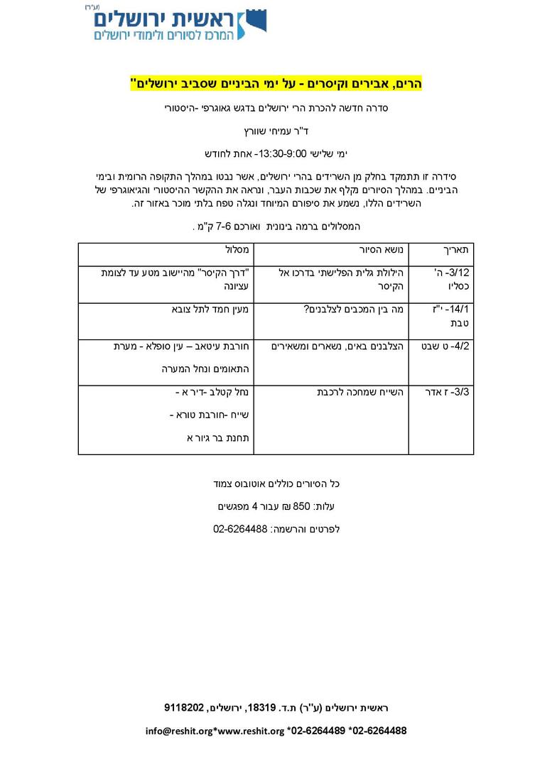 סדרה חדשה להכרת הרי ירושלים בדגש גאוגרפי -היסטורי